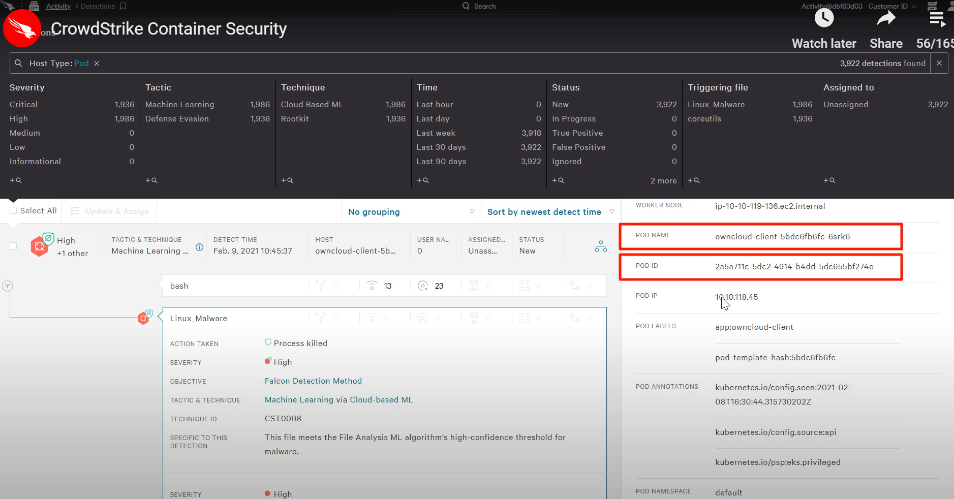- Combining cloud, container, and application contexts give the holy grail of detection & response data