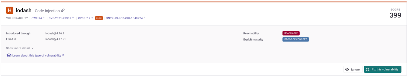 - There were more irrelevant Lodash findings from Snyk, but those findings were from their original research. That’s why the lower percentage for true positive rate could be viewed as a pro or a con: Snyk has a surprising amount of original vulnerability research, which is why their write ups are typically well referenced in practice.