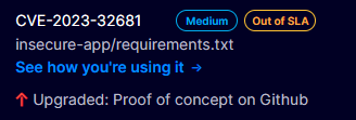 For testing SCA in my insecure-kubernetes-deployments repo, I have a few different categories of vulnerabilities. In my JavaScript files, I import three vulnerable libraries: semver, lodash, and json5 (but as a transitive dependency of babel/core, without declaring it in the package.json). In my python files, I import requests, cryptography, and flask. I use cryptography and requests in a script that doesn’t actually get deployed anywhere (in fact it’s a ransomware script, to test contextually if scanners can tell what’s happening), but I do use flask in my web app. If I did deploy that script, I would be vulnerable to 3 vulnerabilities on Requests, and 2 vulnerabilities on Cryptography.