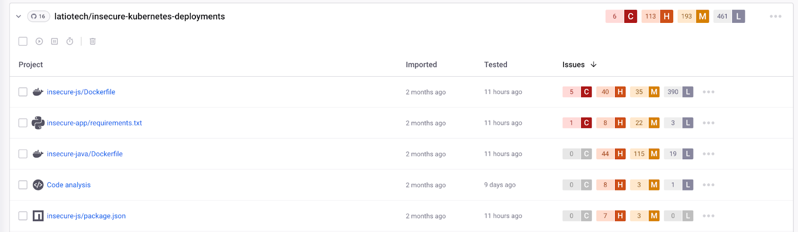 The goal of this assessment is to discover these three vulnerabilities with fewest false positives as possible. To keep things simple, the repo was scanned only via importing the code via Github.