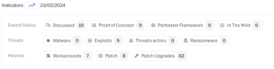 While exploits give attackers the ability to more easily launch attacks, threats are how weaponized the exploits have become. This section has at least four statuses to indicate how widespread an attack may be, or if there are certain attack types that most likely correspond to the exploit.