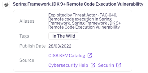 Finally, in the wild comes from CISA KEV and indicates that known attacks and exploits have been carried out against the vulnerable package.