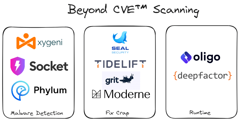 - When I meet with malware scanner vendors, they’ve made an obvious investment into real security and detection engineering. However, they tend to not have a great user experience (UX) for the CVE based workflows, and generally lack the bells and whistles of the traditional SCA leaders to deal with CVEs. They also have the unfortunate sales disadvantage of not being very shiny - you’re probably not using any active malware packages, but you definitely want their tool if you are!