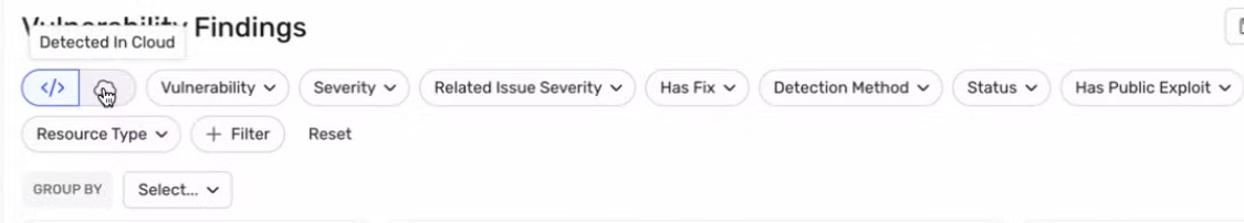 - The UX of traversing multiple discovery sources. I found this simple switch on the vulnerability findings view to be an extremely elegant approach for navigating the different vulnerabilities. There is a massive complexity in navigating the nuances between code and cloud findings, and this simple toggle is a really smart approach.