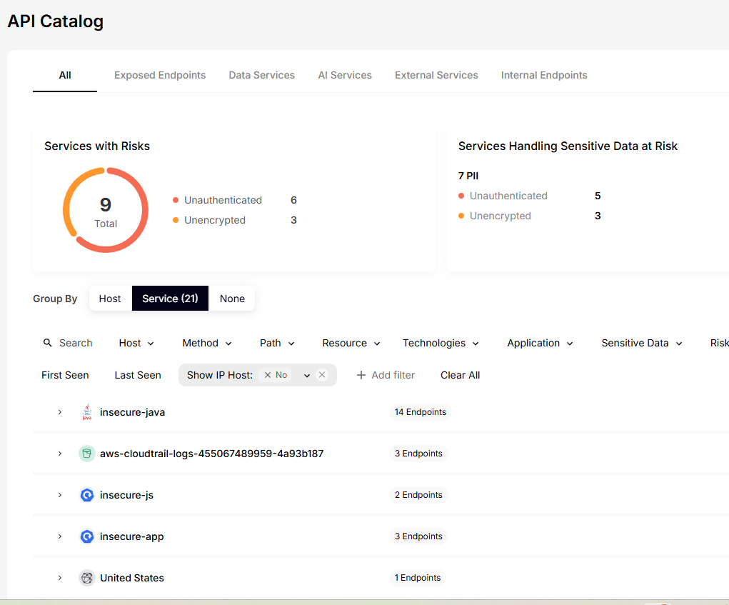 It’s been exciting to see API security grow into a feature of CADR, as gathering this application layer data has long been a missing point of context for understanding cloud workloads. Understanding API catalogues and regular traffic is foundational to understanding how workloads are operating and detecting application layer attacks. In testing, Sweet was able to helpfully group by either hostnames or service names to know exactly what API endpoints a service was surfacing.