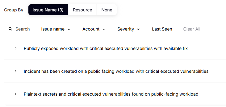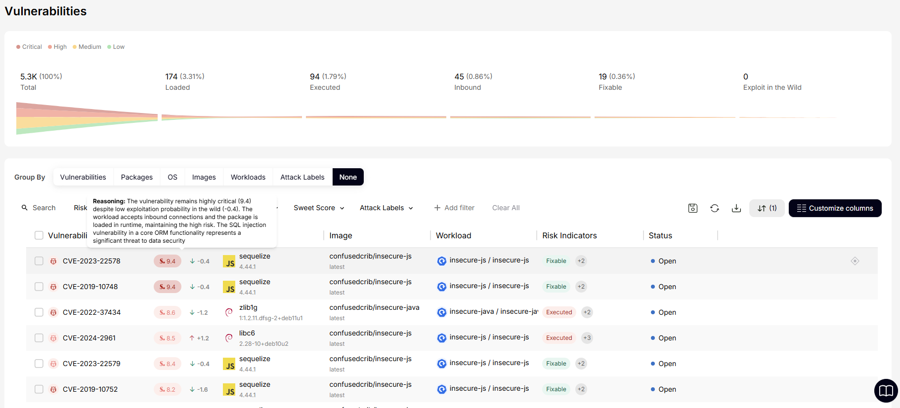 Prioritization is present, and Sweet shows the patterns to highlight “toxic combinations” of exposed services and critical vulnerabilities. The implementation here is functional but basic. It’s also worth mentioning the biggest feature gap on the vulnerability side - the lack of agentless scanning.