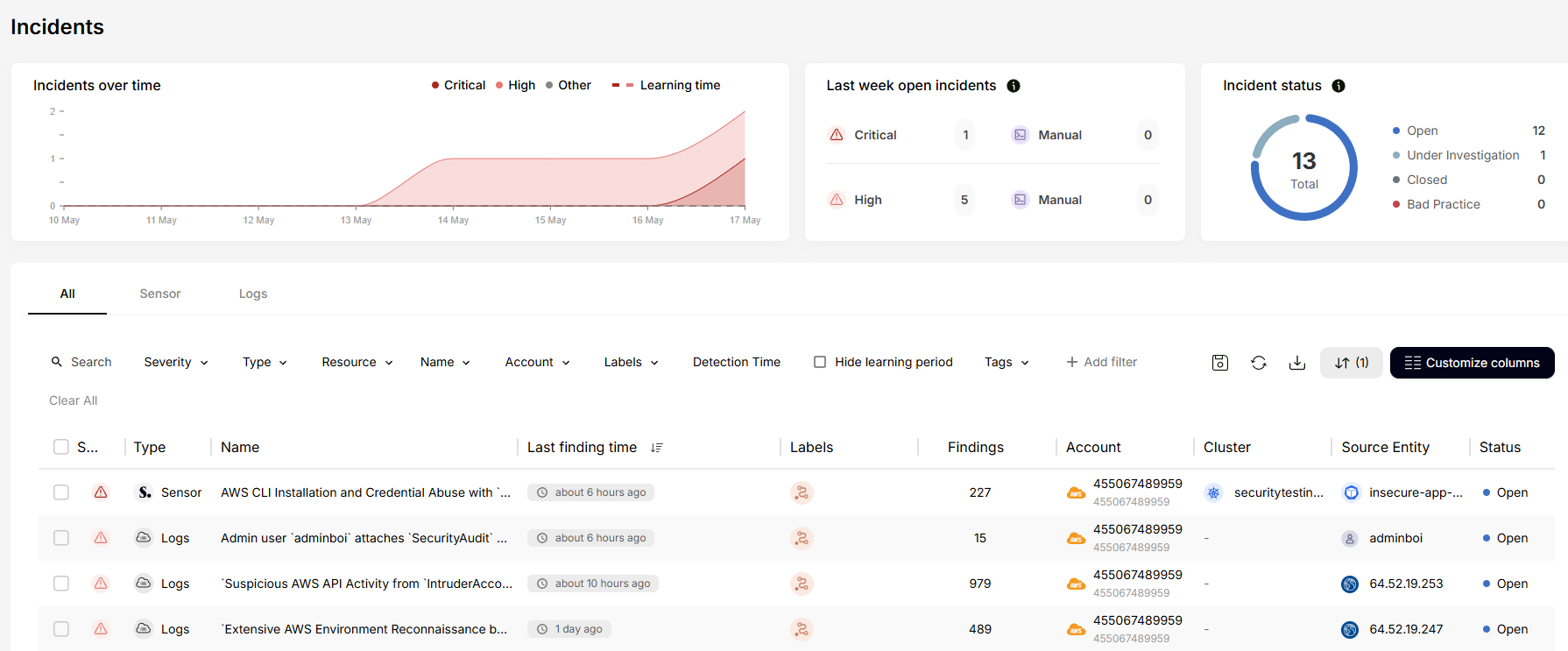 The attack summaries could also have pros and cons when striking that delicate balance between too much noise and not enough. Every meaningful test I conducted got a story created; however, some individual events would trigger a finding. To be clear, the sensor always detected the event, so custom alerting would still have caught the attack, but it wasn’t always rolled up into an entire incident. To be honest, due to the noisiness of most cloud detection tools, I think Sweet struck a good overall balance when deciding what to alert about as critical. Every security tool has to strike a balance on deciding what to service, and Sweet did a good job.