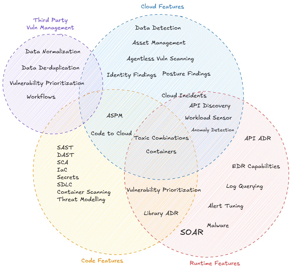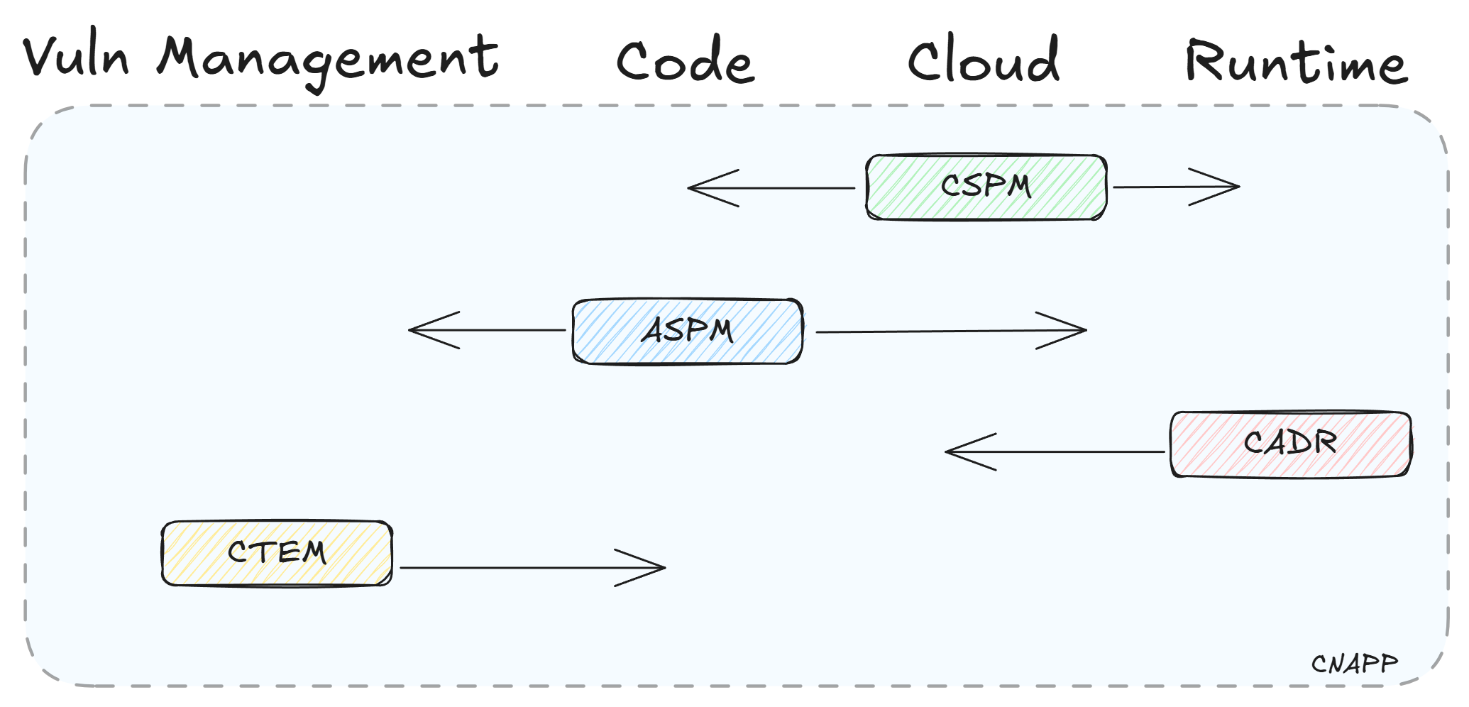 Before getting into the product specifics, it’s worth briefly reviewing the broader CNAPP category. Many platforms in this space attempt to unify cloud posture management (CSPM), vulnerability management (CTEM), code scanning (ASPM), and runtime protection (CADR). The problem is, most of them either spread themselves too thin, or bolt on features that lack depth. Larger platforms have long failed to be the single pane of glass for everything, and that has led to weaker performance at the edges. As a result, many teams end up pairing specialized tools rather than relying on single platforms. The go-to example of this is Aqua (runtime) and Orca (posture) having a partnership, despite offering the same features on paper.
